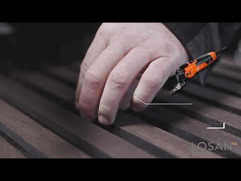 Hotán®-Akustikplatten bestehen aus einem 9 mm starken schwarzen PET-Polyester-Vliesstoff, auf dem 27 x 11 mm große Streifen in durchgefärbtem schwarzem MDF mit Echtholzfurnier montiert sind. Die Streifen haben einen Abstand von 13 mm.